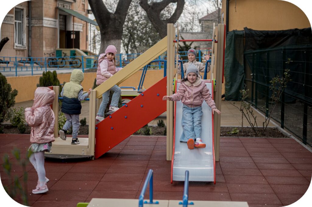 Children at No. 141 Kindergarten in Odesa, Ukraine, are once again able to play and laugh outdoors thanks to new playground equipment installed through an international crowdfunding initiative led by the City of Yokohama in partnership with the United Nations Development Programme (UNDP).